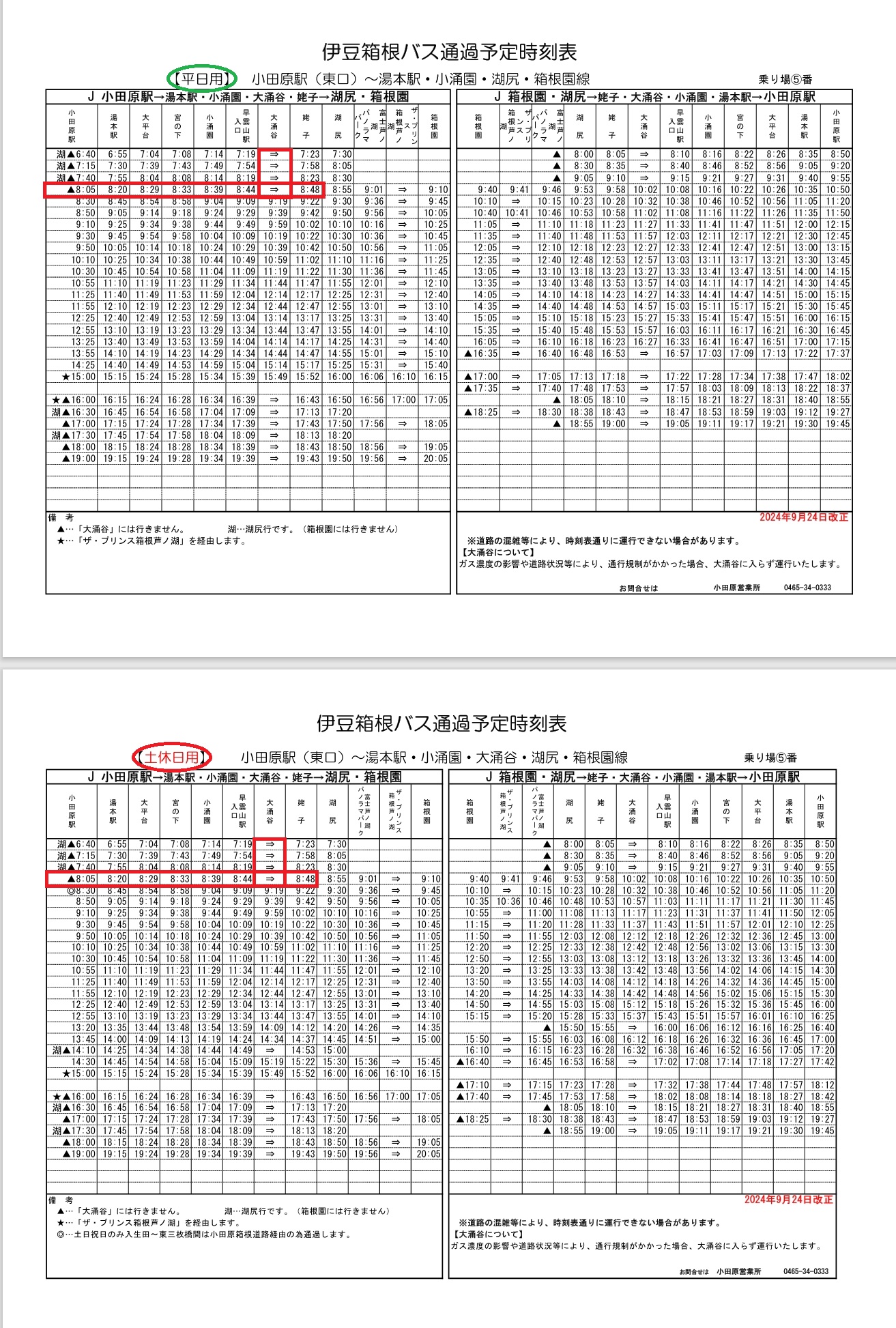朝からのご利用をお考えの方や、特に【一日湯治】のご利用をお考えの方は、大変ご不便ではありますが【大涌谷】開園前に通過するバスにお乗りいただく事をおすすめ致します。